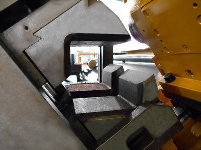 2)簡約設(shè)計(jì)夾鉗布局: 鋸片利用率高,切Φ76的管,直徑Φ315鋸片可以切穿,相比同行,需要Φ400鋸片;降低鋸片使用成本,降低齒輪箱的磨損。